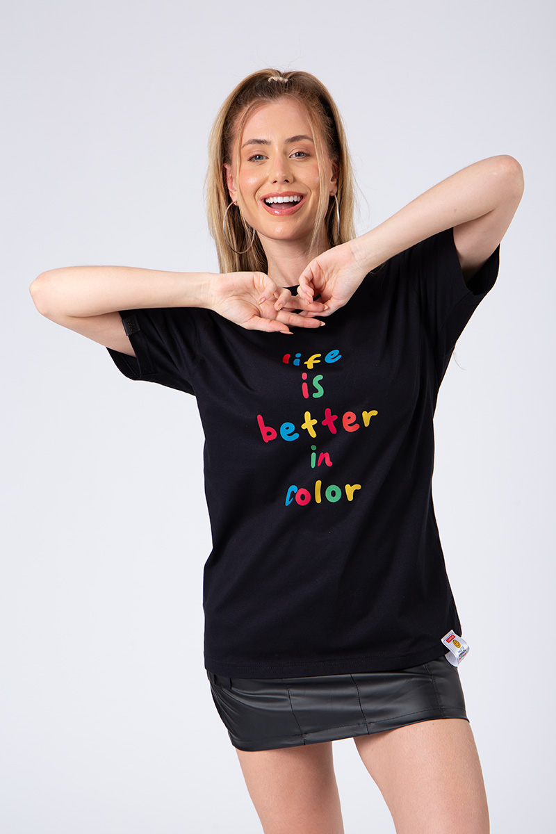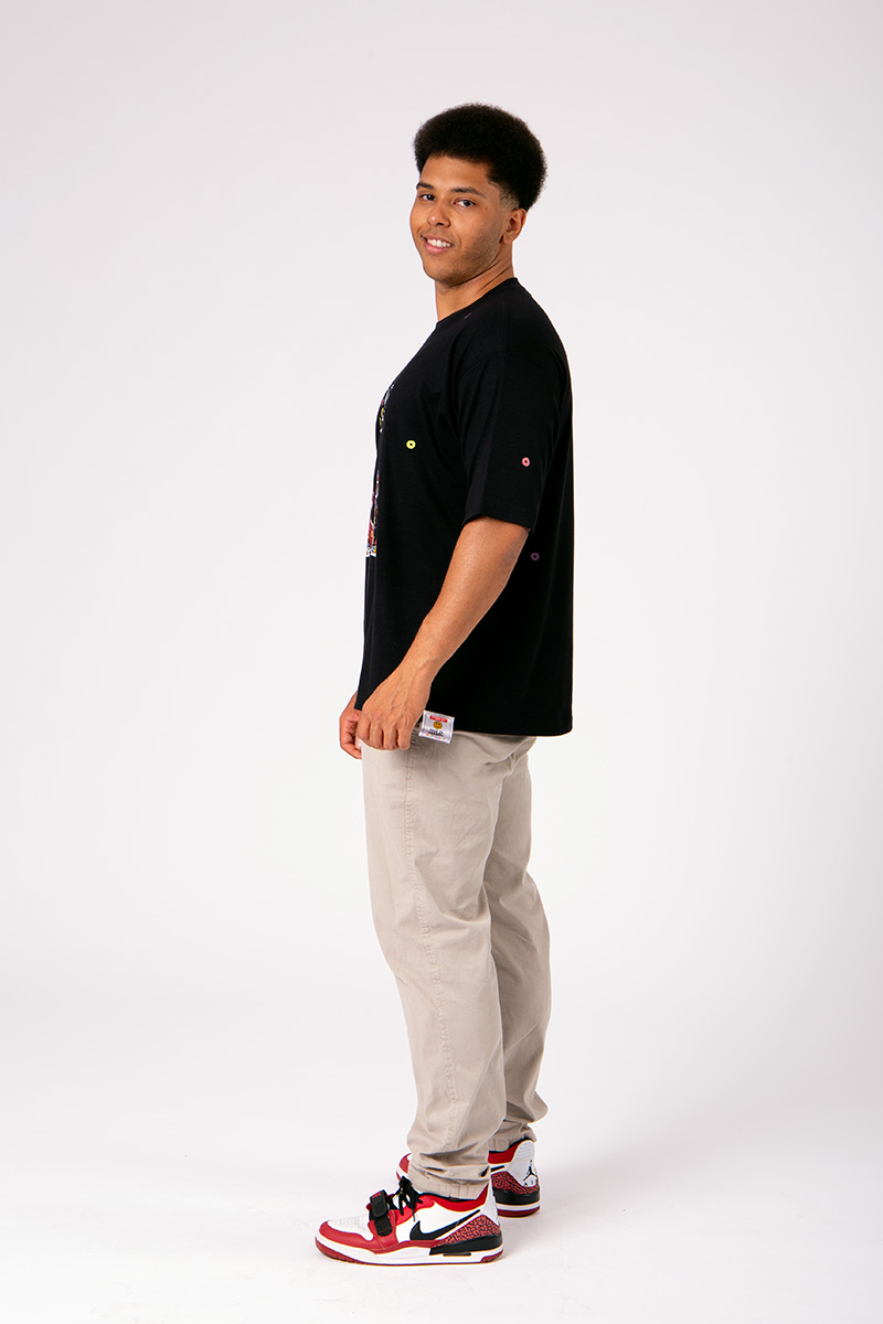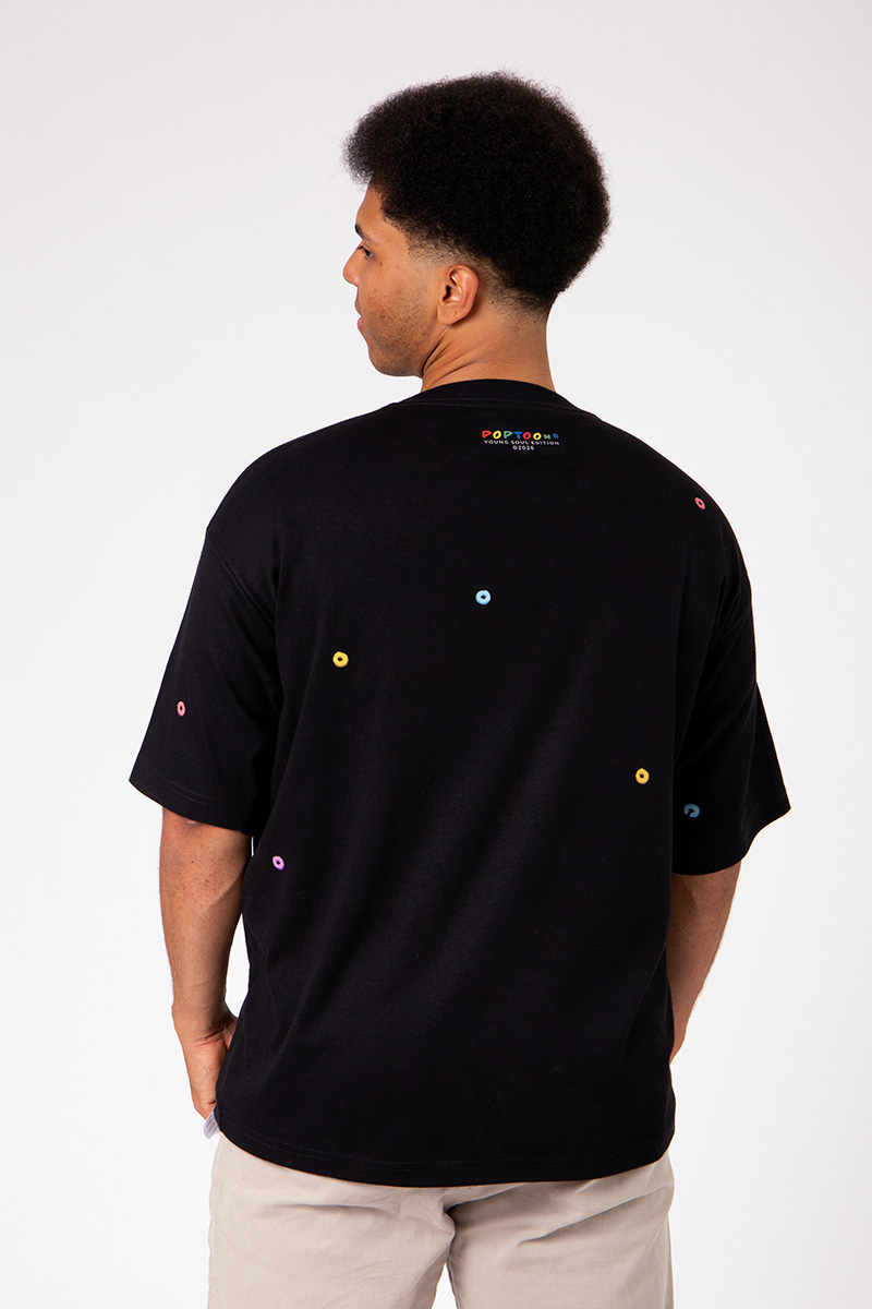 Os detalhes em tinta puff criam textura em 3D porque essa estampa não foi feita pra passar despercebida.