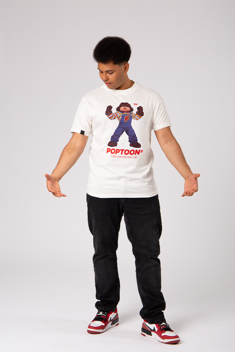 O molde que equilibra tudo: levemente ajustado ao corpo, barra um pouco mais alongada, mangas que acompanham o braço sem apertar e gola fechada de 3 cm em ribana canelada. Um clássico repaginado, com DNA POPTOON®.