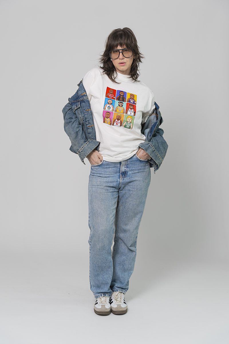 O molde que equilibra tudo: levemente ajustado ao corpo, barra um pouco mais alongada, mangas que acompanham o braço sem apertar e gola fechada de 3 cm em ribana canelada. Um clássico repaginado, com DNA POPTOON®.